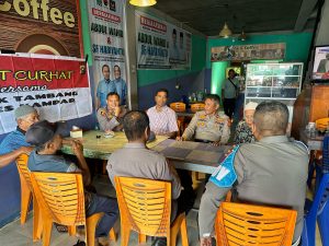 Kampar, TitikNalar – Kapolres Kampar AKBP Mihardi Mirwan, SH, SIK, MM Melalui Kapolsek Tambang AKP Aulia Rahman, melaksanakan kegiatan Jum’at curhat di kedai Jack Caffe di Desa Kampar kecematan Kampa kabupaten Kampar Riau, Jum’at 9 Mei 2025.